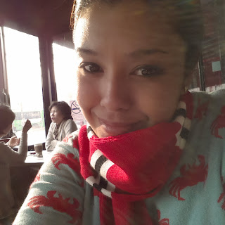 This is me all snuggled up and happy with my tea break and caffeine boost. It was getting really windy and chilly outside, so it was a good idea to stay indoors while I could, and rest up.. before we headed to dinner!